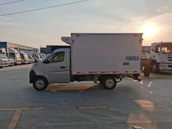 國六長安2.9米冷藏車,整車型號:CLW5020XLCSC6,整車尺寸:4970*1720*2500(mm),廂體內徑尺寸:2900*1560*1590(mm),哈爾濱東安汽油發動機1.5排量115馬力,175輪胎,5擋變速箱,動力轉向,ABS,汽剎,軸距3360mm。