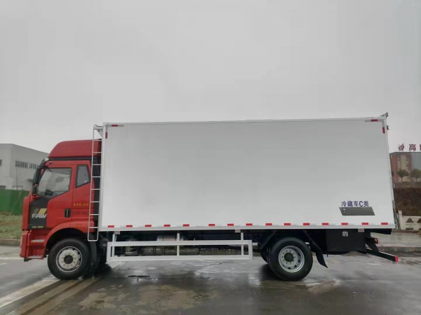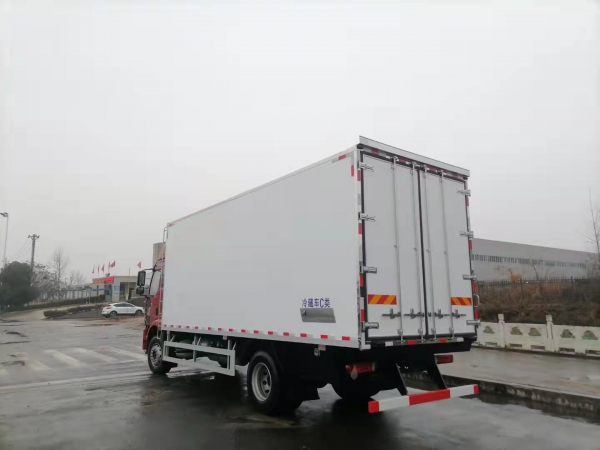 保溫箱工藝質量介紹:冷藏車廂體是采用國際通用三明治工藝+我廠專利木質工藝(龍骨連接鑲入環保防水木材起保溫耐腐蝕作用)、斷橋隔熱技術。一體式廂體。廂體中間為新型環保輕量化保溫材料,內外加厚玻璃鋼,高強度粘合劑,熱壓成型,外框采用不銹鋼,加厚鋁型材包邊,不銹鋼大門鎖、配件,廂體拼接出來不打膠無縫隙,降溫速度快、散溫慢,保溫效果好,門帶斜邊,副梁是510大梁鋼一次性折成,用壓板鎖緊,側防護網和后保險杠一次性成型,廂體具有質量輕、強度高、無滲漏等特點,廂體堅固耐用,保溫效果高,保溫效果達到國家A級標準!(廂體選裝活動框架式肉鉤,對接式滑軌,直排式滑軌,通風槽,隔溫板,內不銹鋼,藥品GSP認證)