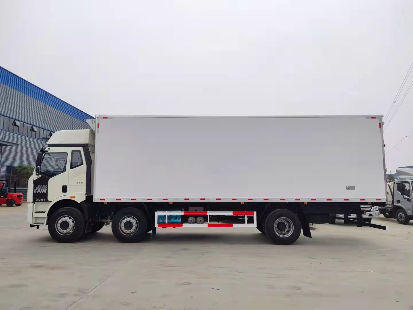 國六解放J6L小三軸8.7米冷藏車,整車型號:CA5250XLCP66K1L6T3E6,整車尺寸:11060*2600*4000(mm),廂體內(nèi)徑尺寸:8700*2420*2520(mm),一汽大柴柴油發(fā)動機(jī)260馬力,1200輪胎,9擋變速箱,方向助力,氣囊座椅,多功能方向盤,原廠空調(diào),中控鎖,遙控鑰匙,電動門窗,行駛記錄儀,氣剎,ABS,軸距1900+4700mm。