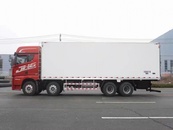 國六解放JH6前四后八9.5米冷藏車,整車型號:CA5311XLCP25K2L7T4E6A80,整車尺寸:11995*2600*3995(mm),廂體內(nèi)徑尺寸:9500*2440*2500(mm),一汽錫柴柴油發(fā)動機(jī)460馬力,295真空胎,12擋變速箱,方向助力,氣囊座椅,多功能方向盤,原廠空調(diào),中控鎖,遙控鑰匙,電動門窗,行駛記錄儀,氣剎,ABS,軸距1900+4500+1350mm。